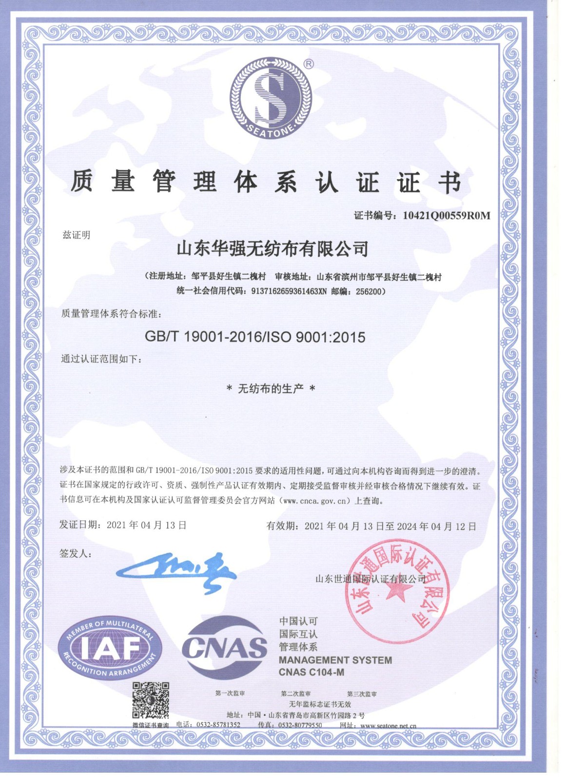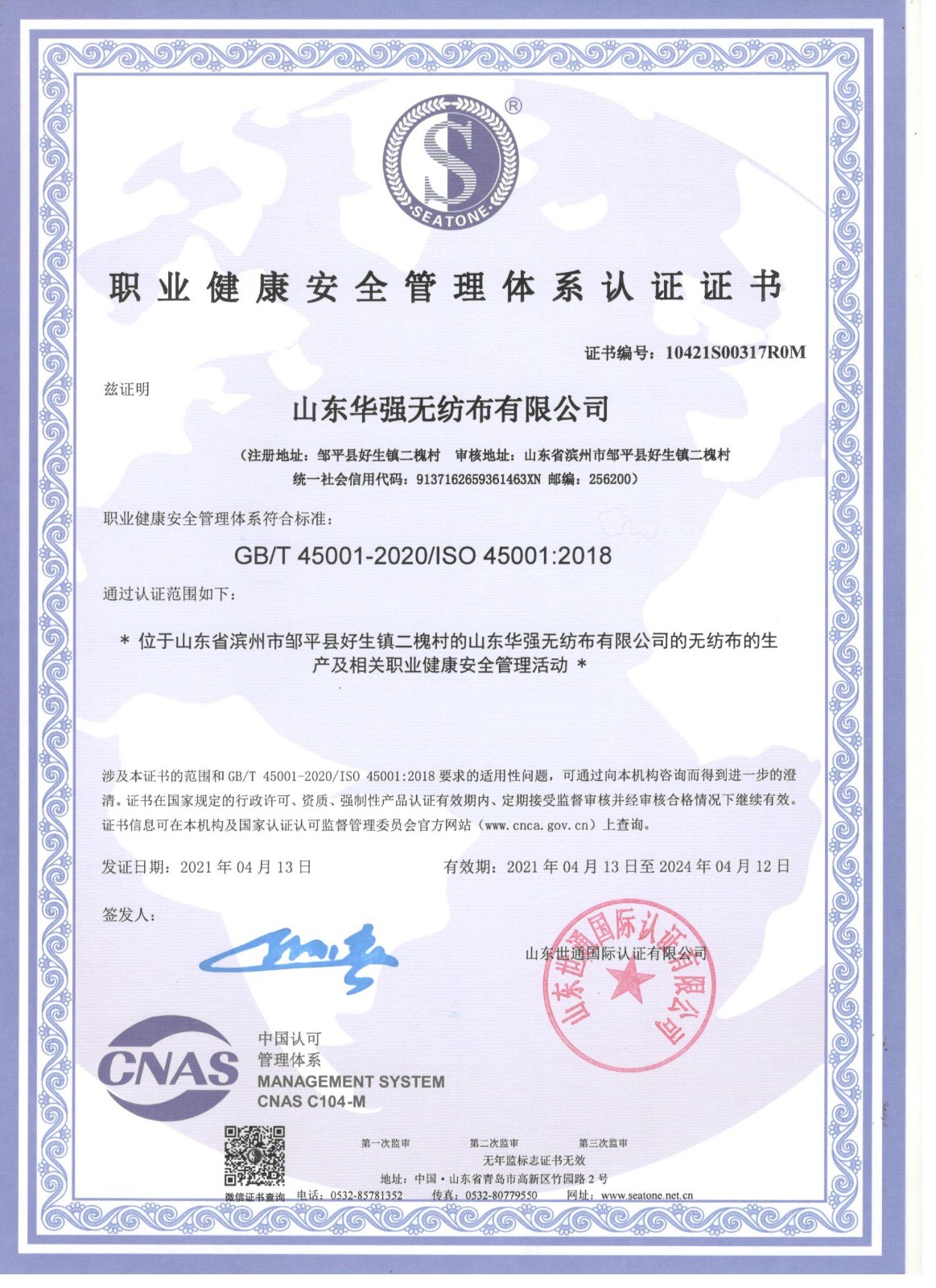 山东华强无纺布有限公司始建于2011年,位于邹平/周村交界地段,紧邻新309国道的好生二槐工业园区,公司占地面积70多多亩,距离济青高速路口邹平东仅3KM, 距离邹平新高铁站口7KM, 济南遥墙国际机场80KM, 花园式生产织造单位,现有职工200余人,职工宿舍50余间,无纺布生产线10条,年产量1.2万吨,可生产幅宽3.2米以内的S,SS,SMS,SSS,SMMSS,PP纺粘无纺布,熔喷滤材无纺布,针刺无纺布,丙纶短纤,及一次性劳保口罩的专业生产厂家。公司可根据客户要求生产各种幅宽和颜色的无纺布,产品广泛用于医疗卫生、家庭装饰、工业用布、农业用布、广告喷绘,包装、建筑材料,环保用品等。规格从10g/m2-150g/m2,幅宽从5cm-320cm之间任意调制,产品有亲水型、拒水型、阻燃型、抗老化型、抗静电型,抗紫外线型,隔热绝缘型等,广泛适用于各行各业,各个领域,并可根据客户要求进行抗菌、PE淋膜,印花,亲水及超柔软处理。产品畅销全国各地,并出口日本、韩国,东南亚,中东,美国,中美洲及欧州等地,深受广大客户的青睐。公司的另一拳头产品是3D椰梦维环保床垫及乳胶深度睡眠床垫生产线3条,日产量3万平米,根据客户需求可随时调整尺寸,欢迎各界朋友莅临参观指导和业务洽谈,客户的谏言建议就是我们前进的动力,愿与大家精诚合作,共谋发展大略,筹划未来愿景。